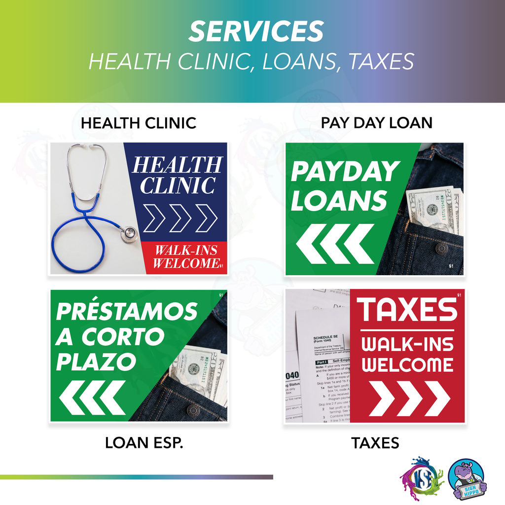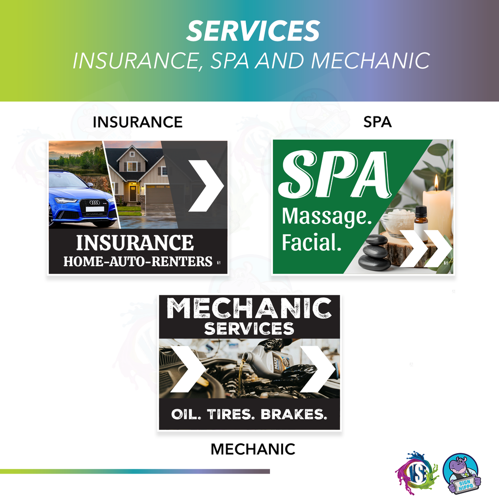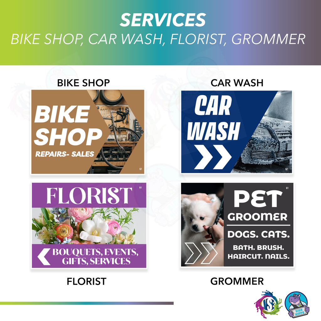 Small Business Directional Lawn Signs. Perfect for getting your small business noticed and helping customers find you. Multiple businesses to pick from. 24" x 18" double sided lawn signs with stakes.